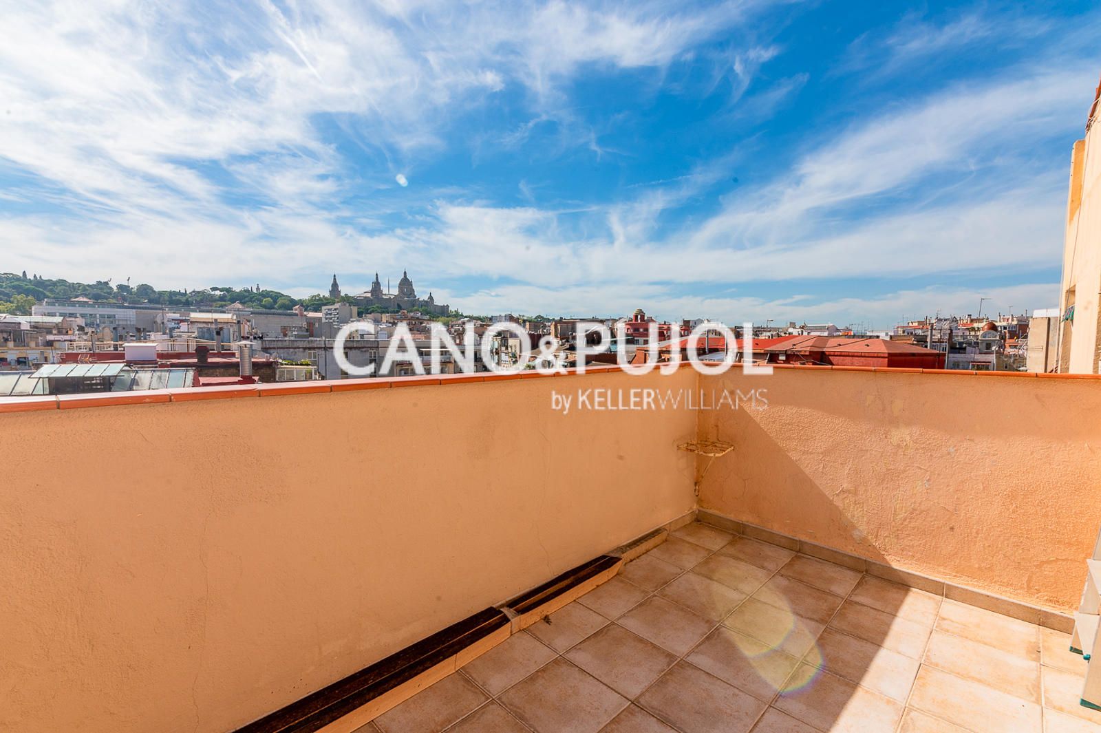 Situado en la reconocida Avenida del Paral·lel, en el barrio de Sant Antoni, este ático ofrece una combinación perfecta de ubicación, luz y comodidad.