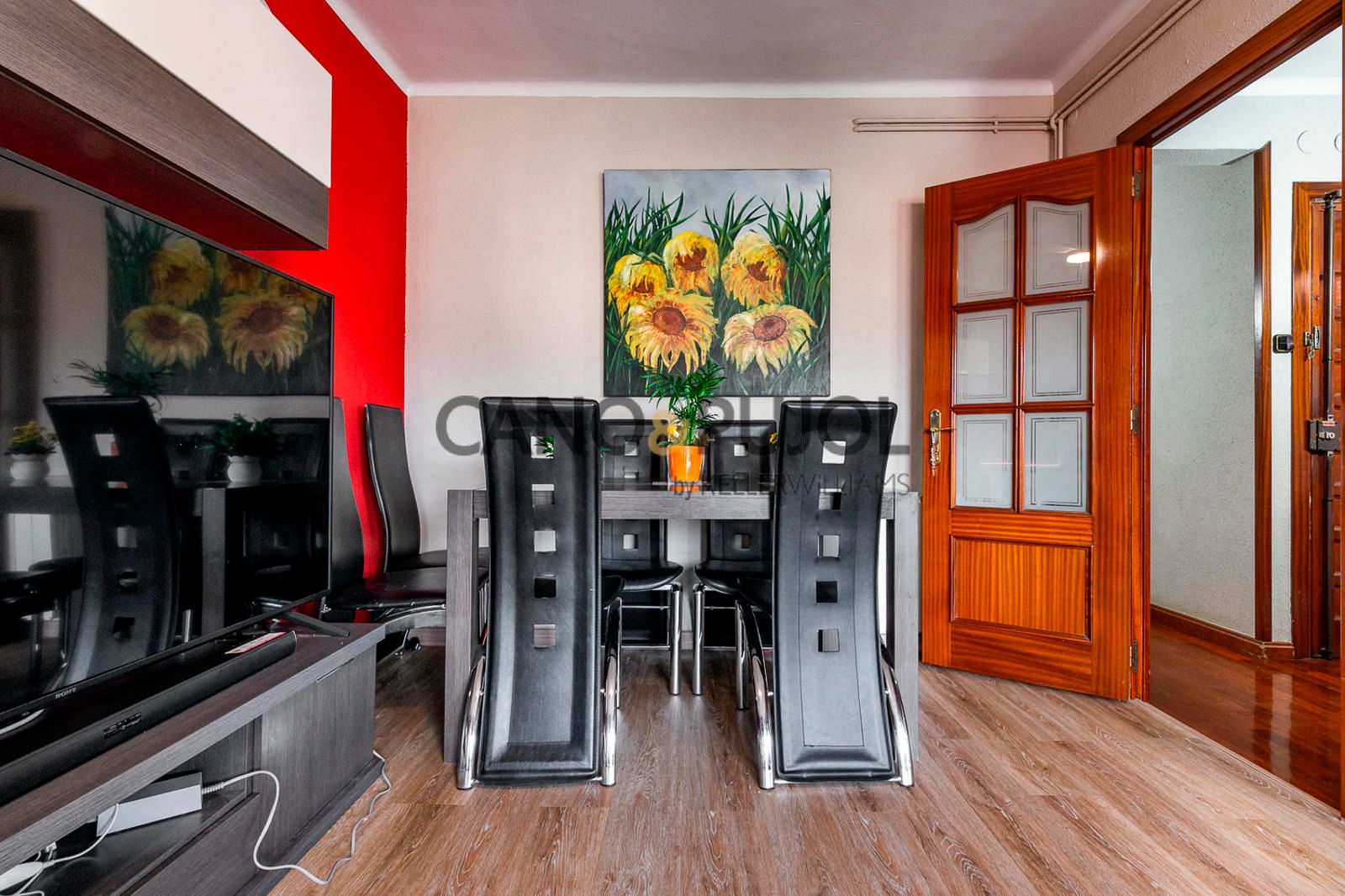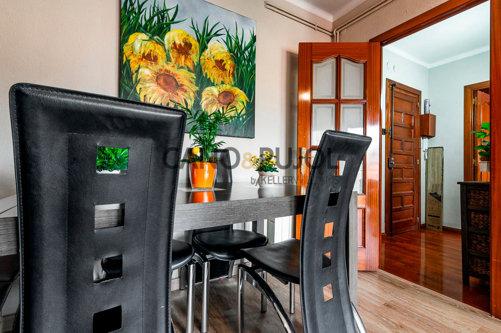 La vivienda ofrece una distribución práctica y bien aprovechada. Al entrar, un recibidor da paso a un salón-comedor luminoso con salida a balcón, un espacio agradable donde disfrutar de la luz natural y de las vistas despejadas.