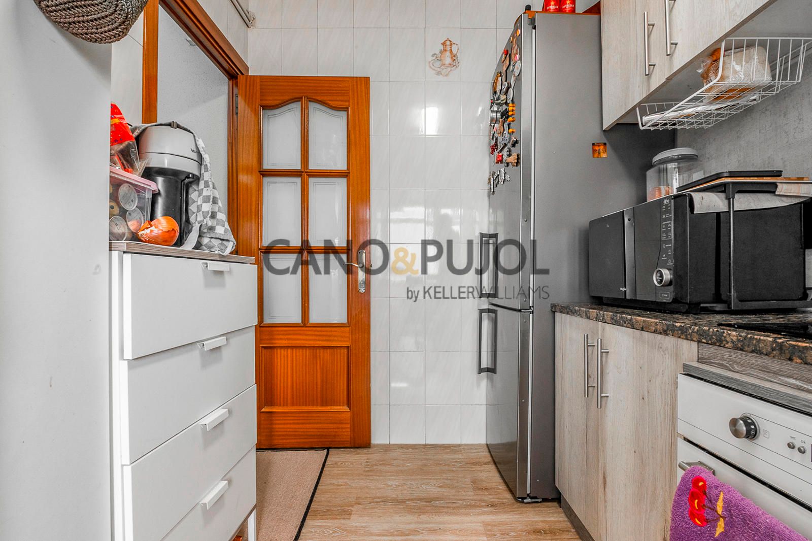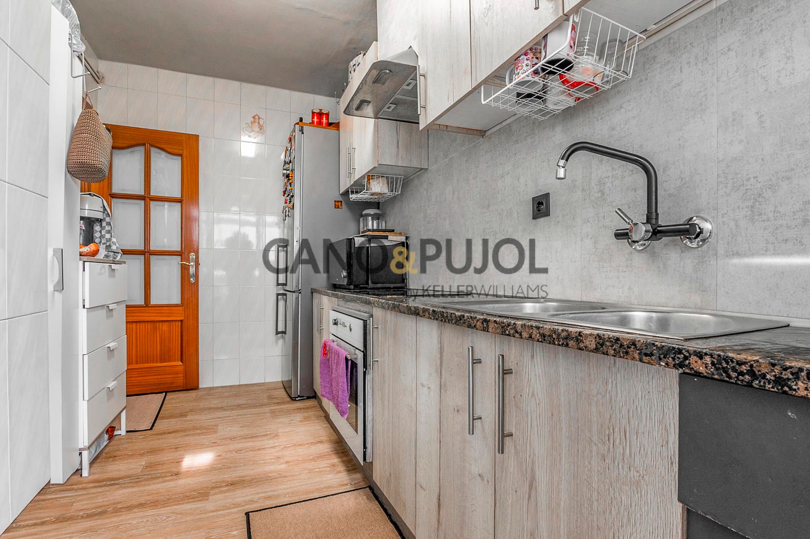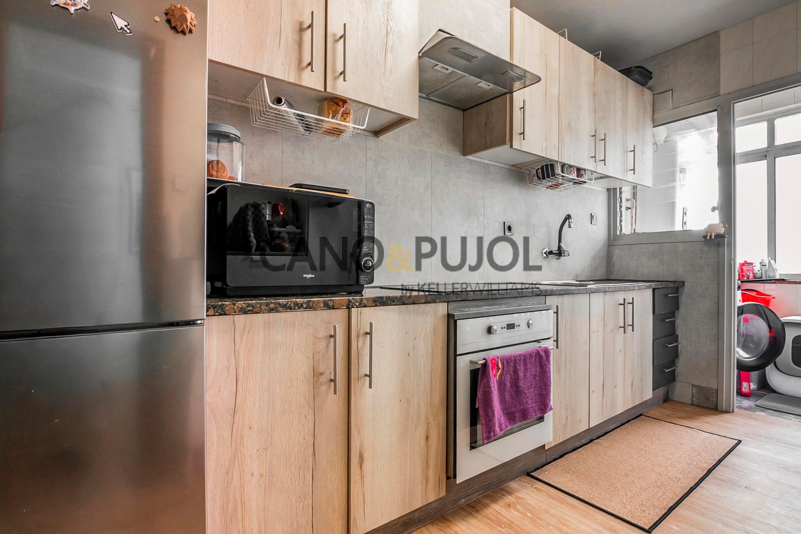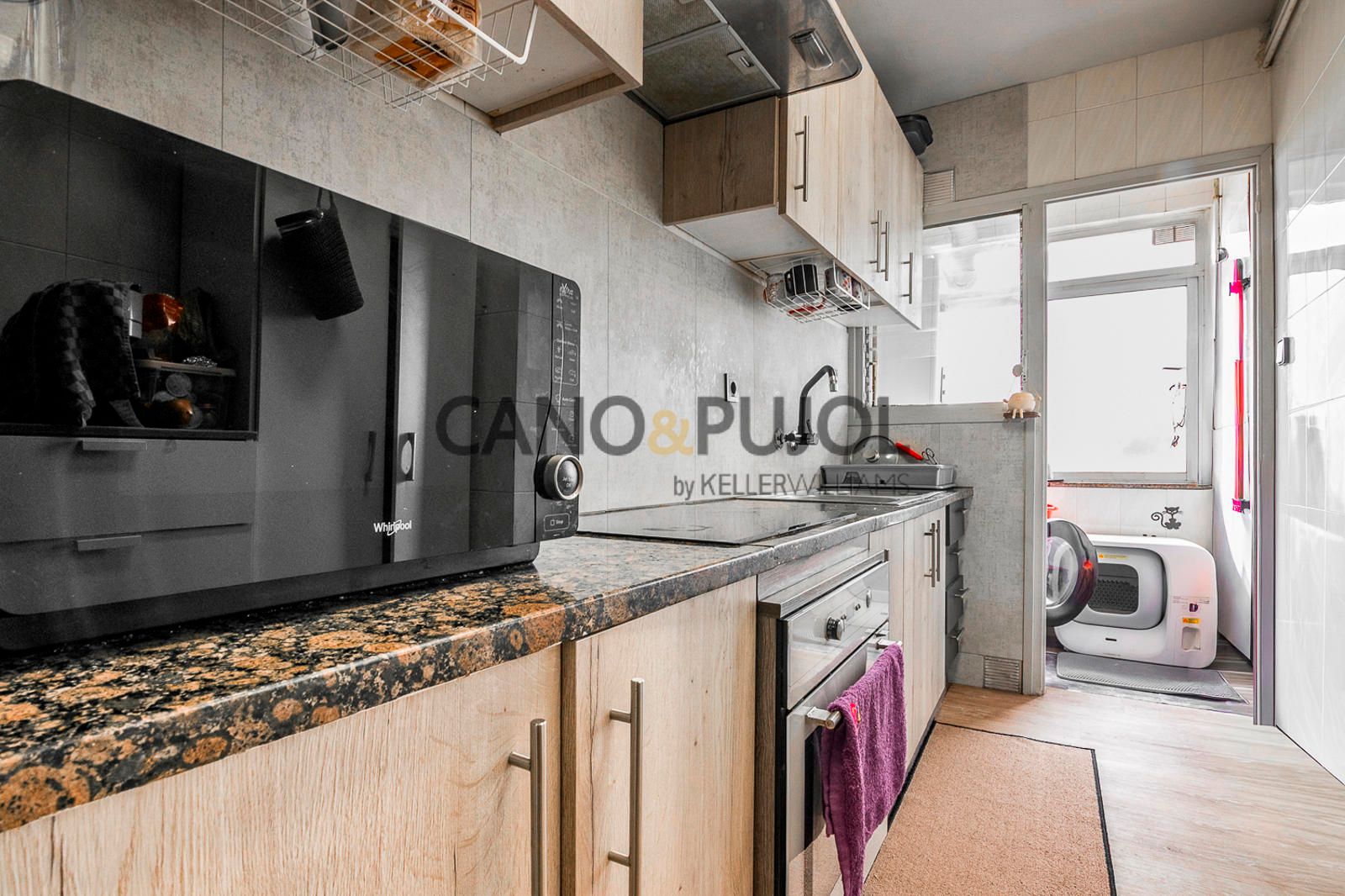 La cocina es independiente, equipada con vitrocerámica y cuenta con zona de lavadero, aportando funcionalidad al día a día.