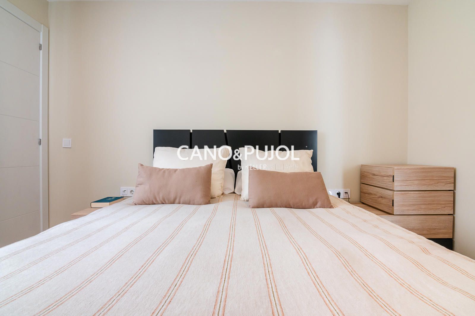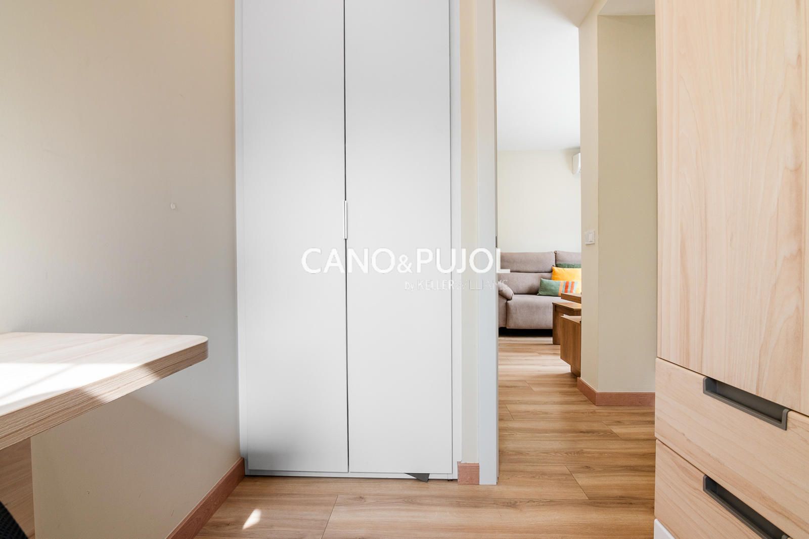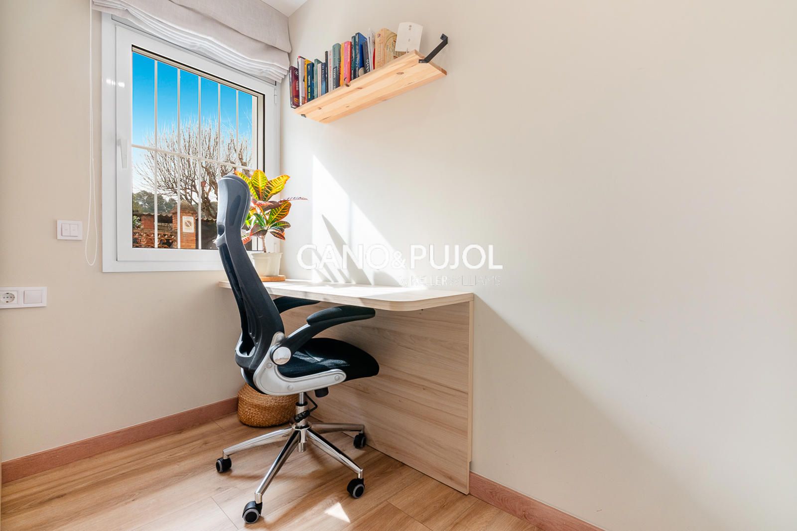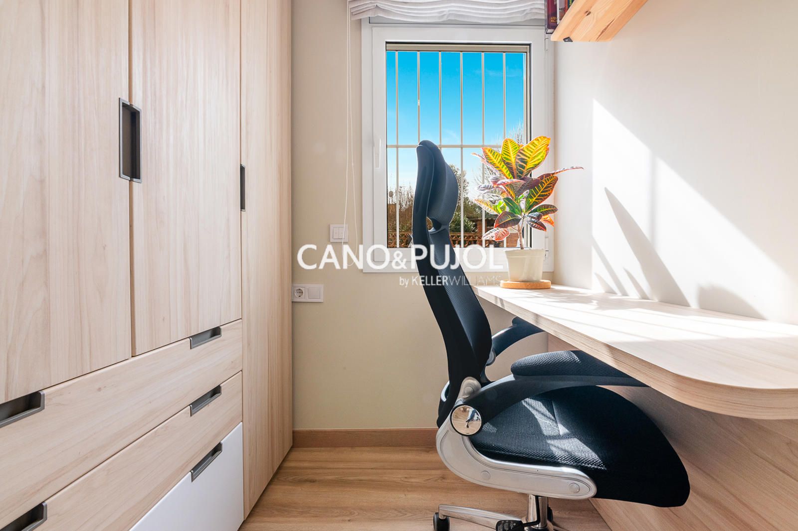 La vivienda dispone de una habitación de matrimonio con zona de armario y una segunda habitación más pequeña destinada a estudio o despacho, ideal como espacio de trabajo o lectura.