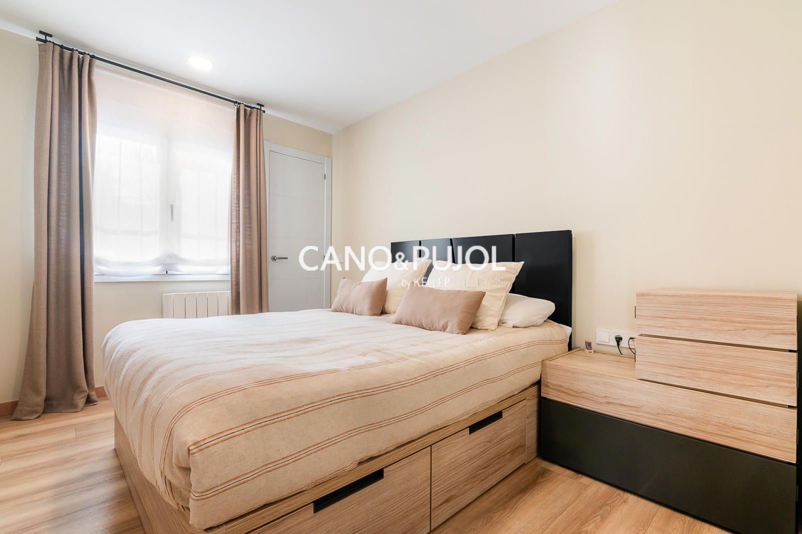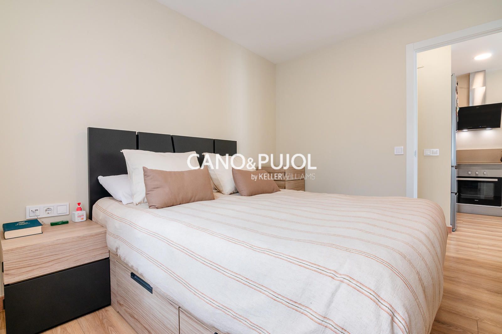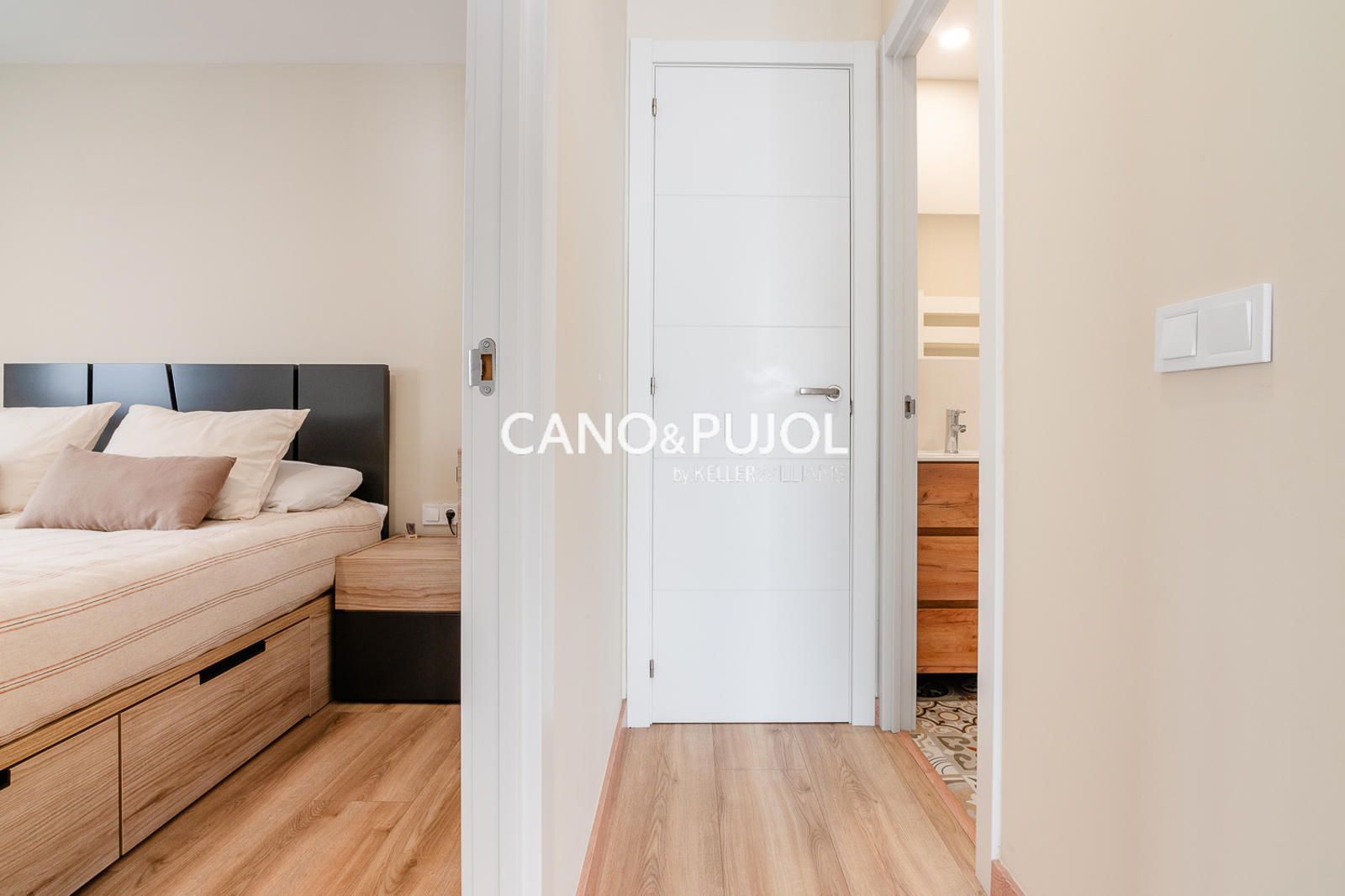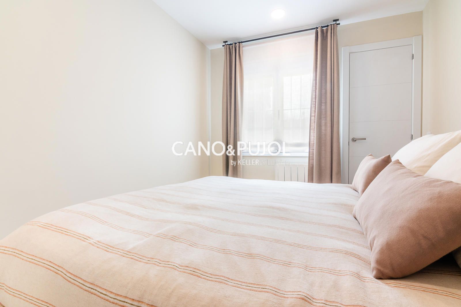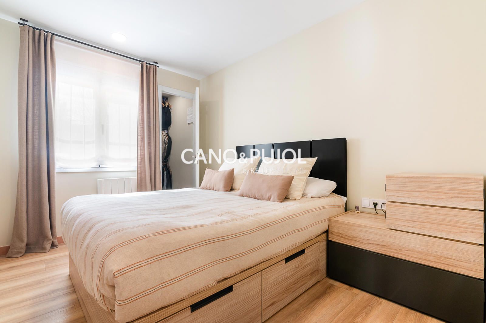 La vivienda dispone de una habitación de matrimonio con zona de armario y una segunda habitación más pequeña destinada a estudio o despacho, ideal como espacio de trabajo o lectura.