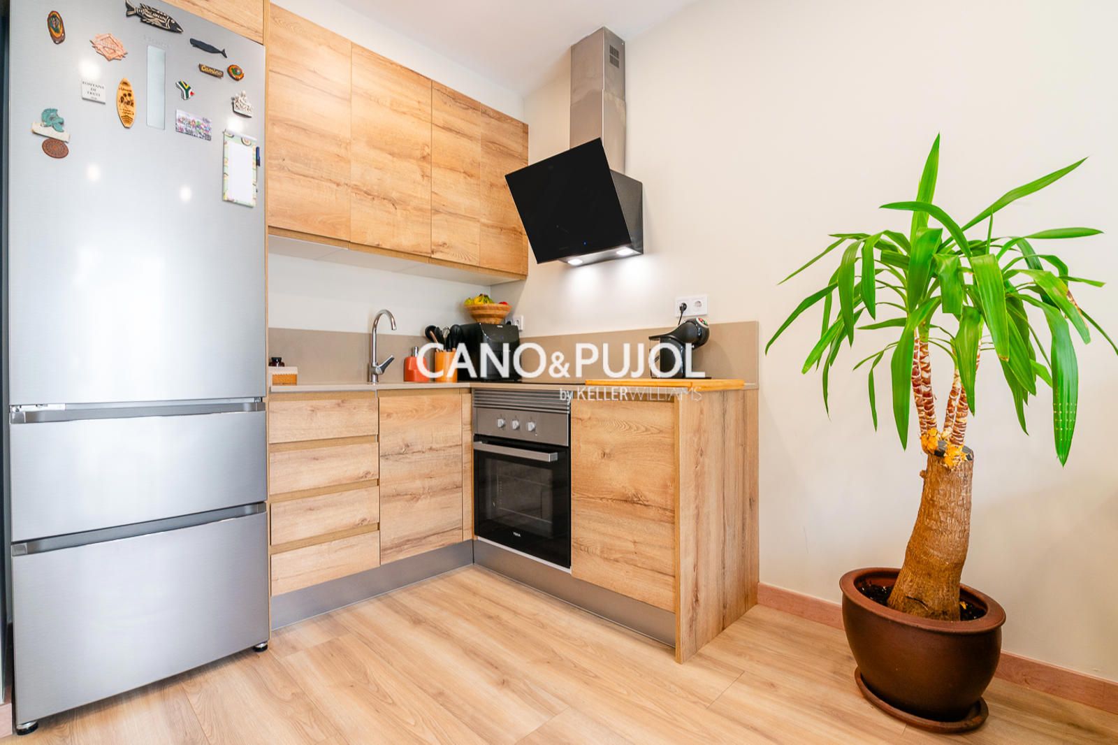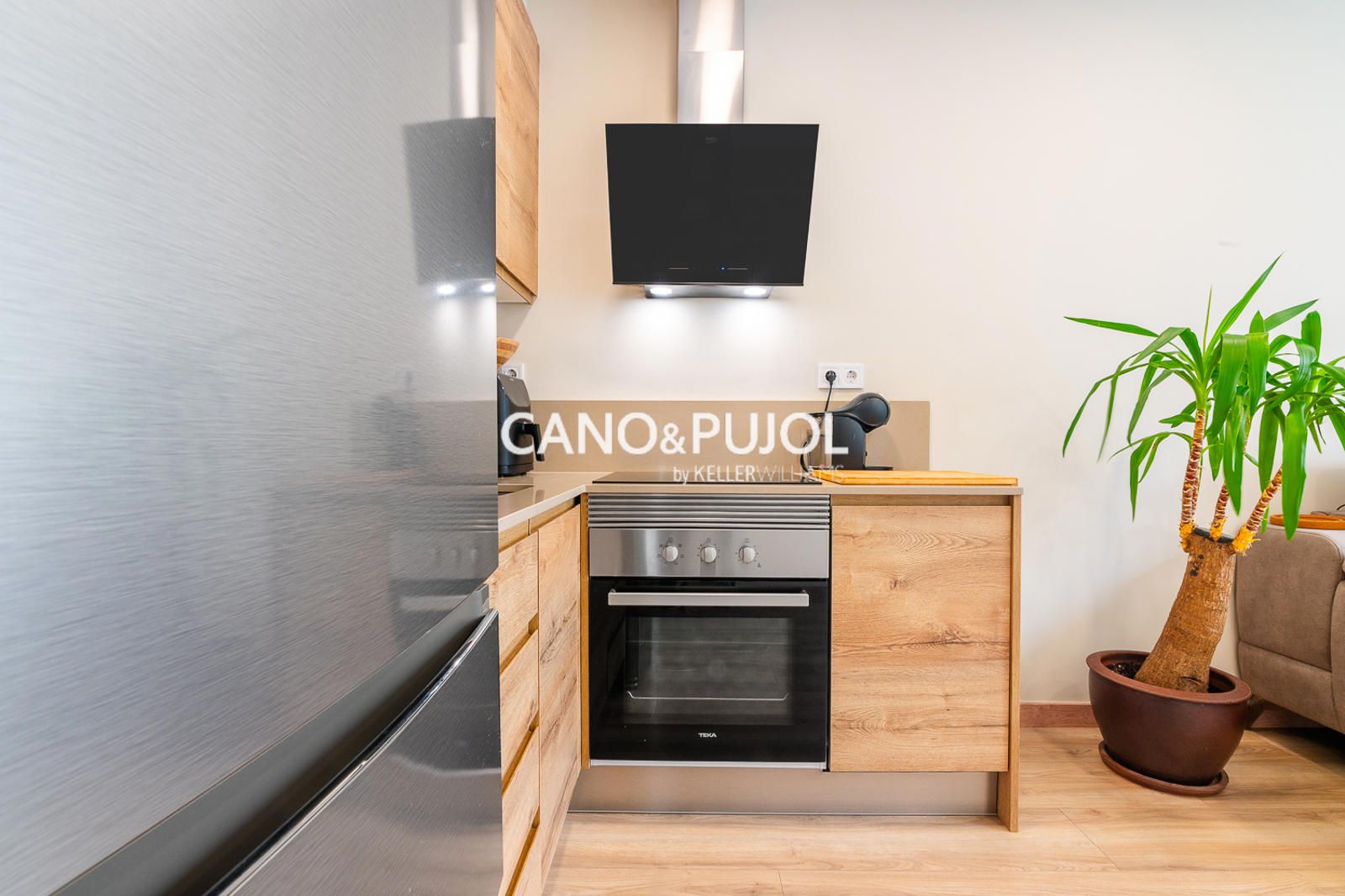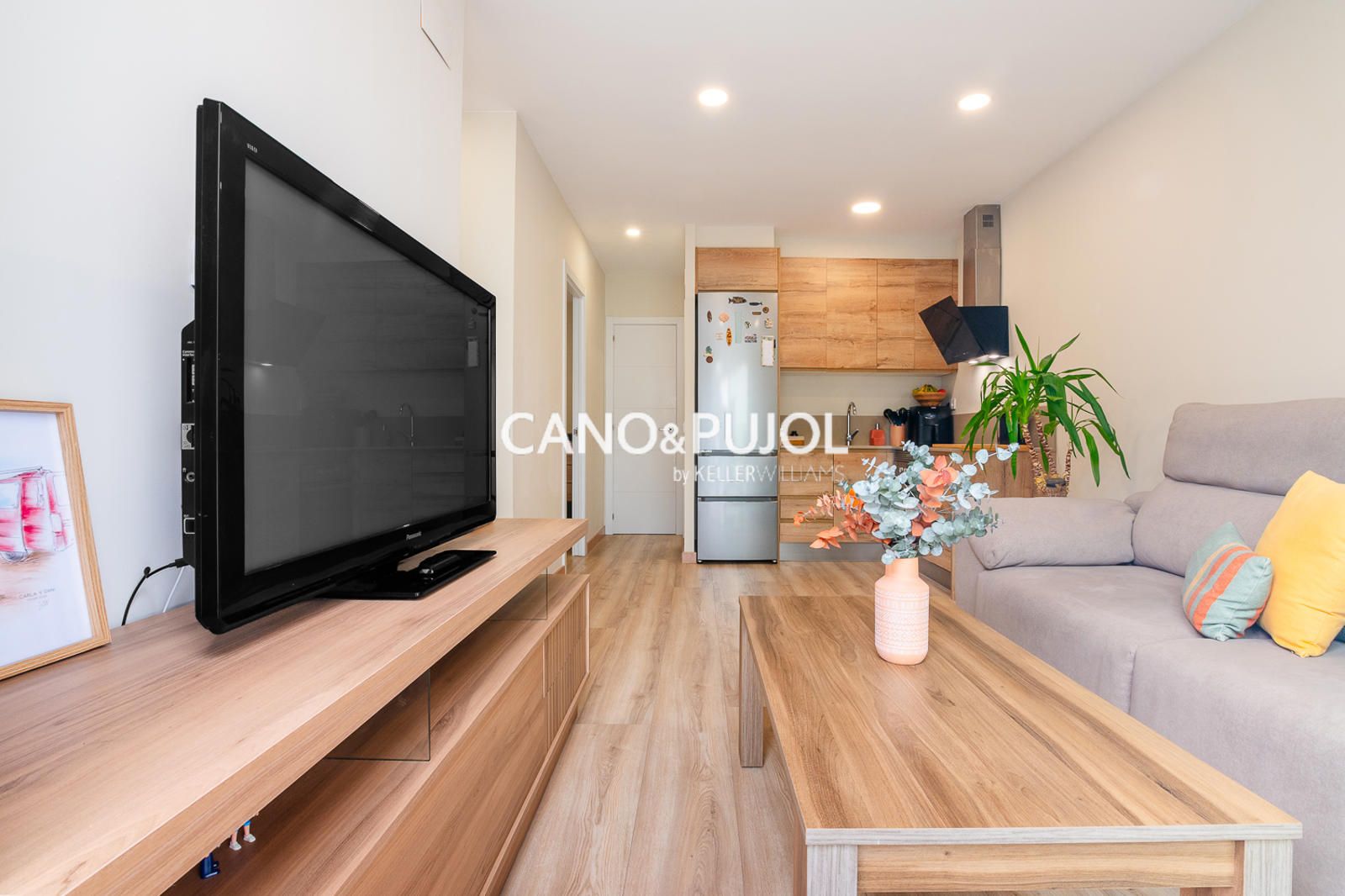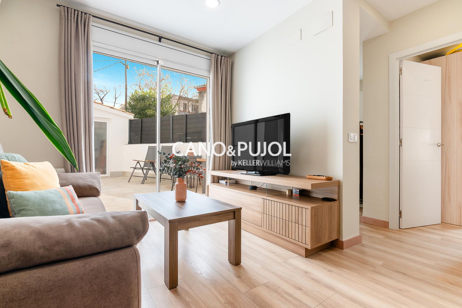 Al acceder a la casa encontramos un agradable recibidor que da paso a un luminoso salón comedor con cocina abierta, equipada con vitrocerámica y perfectamente integrada en el espacio. Desde el salón se accede directamente a una amplia terraza privada, un espacio muy agradable para disfrutar del exterior, crear una zona chill-out o un pequeño rincón verde, con gran privacidad ya que no tiene vistas directas de vecinos.