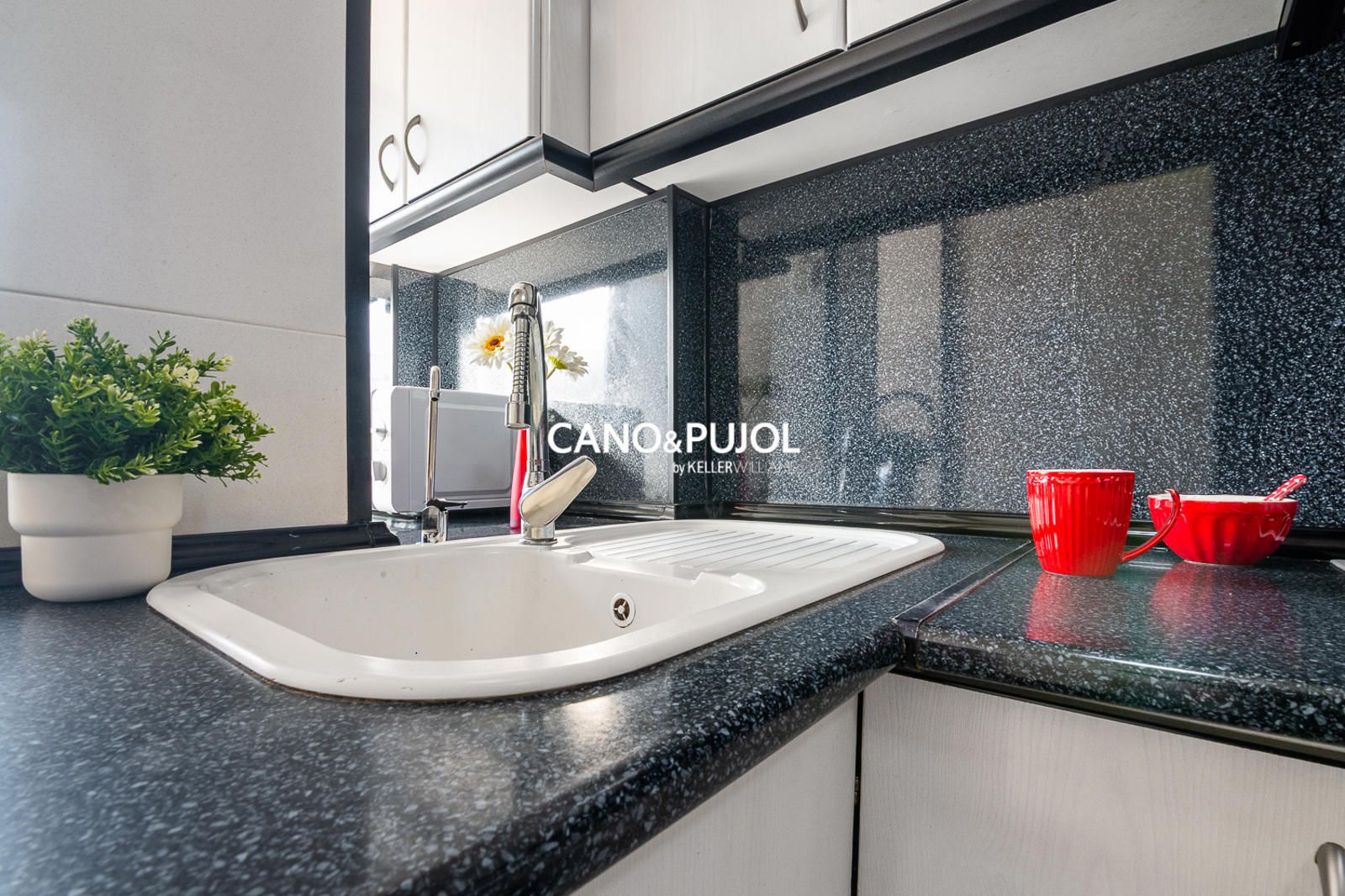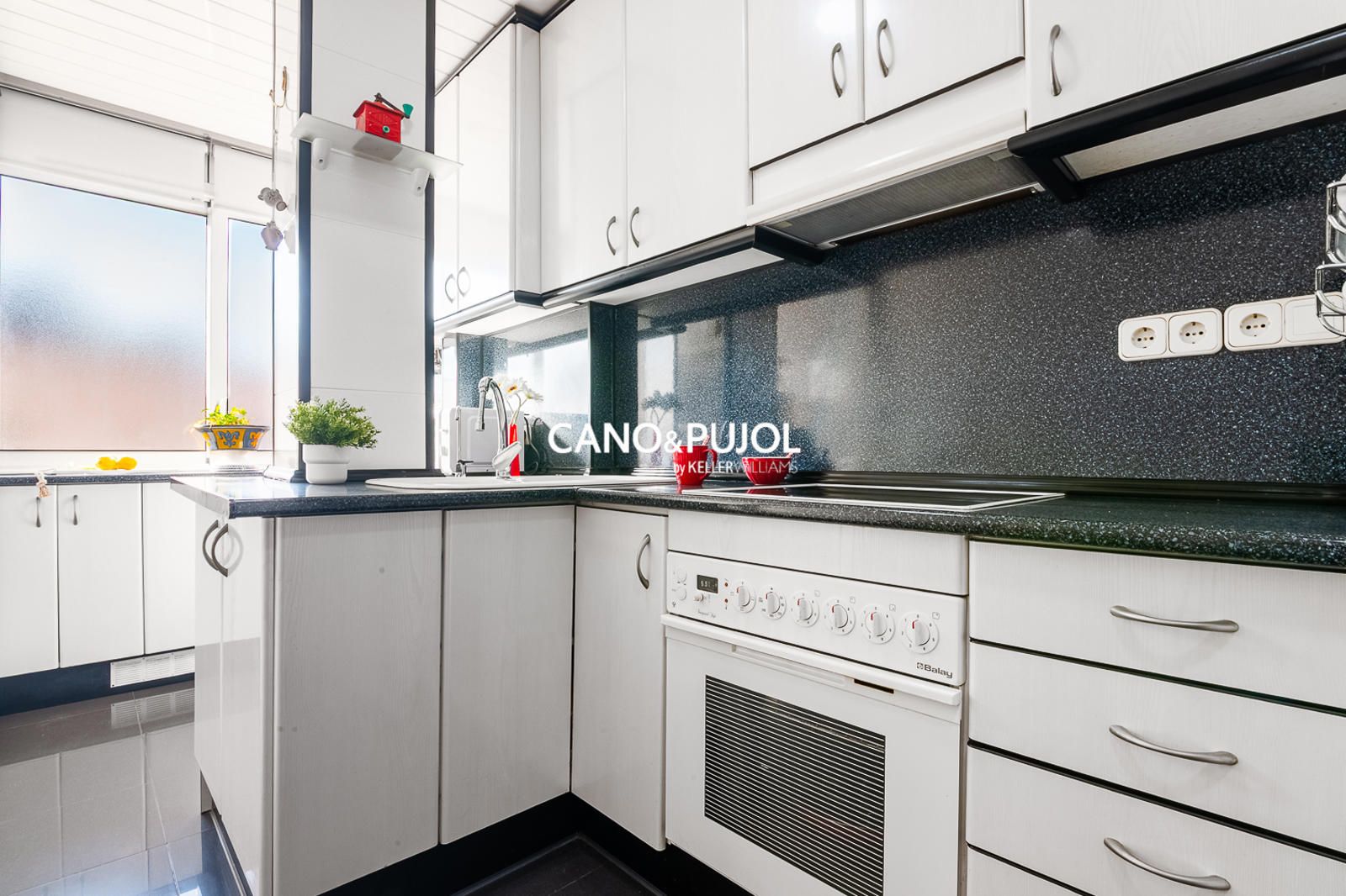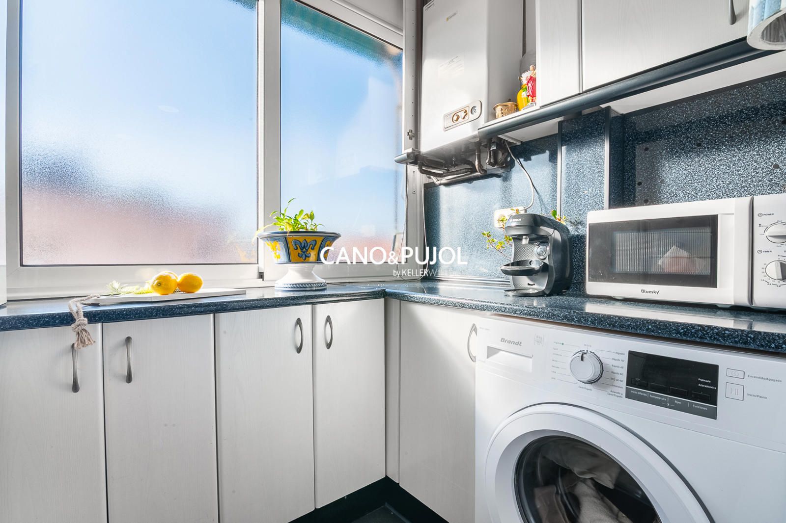 • Cocina office amplia y práctica, reformada y ampliada con el lavadero original, con la posibilidad de abrirse al comedor para ganar aún más espacio y modernidad. Los acabados incluyen puertas de roble macizo en tono claro y suelos de gres que aportan calidez y durabilidad. Además, dispone de un armario empotrado que optimiza el almacenamiento.