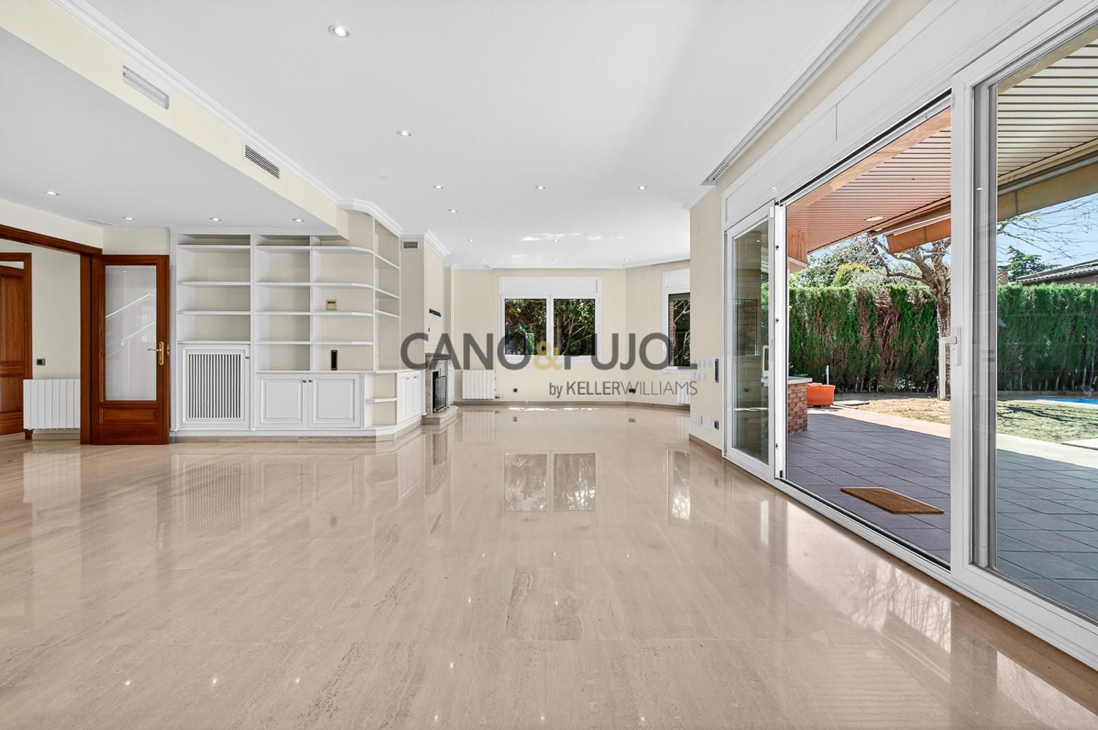 • Planta baja: majestuoso hall de entrada inundado de luz natural, despacho privado, dormitorio de invitados en suite, amplio salón-comedor con chimenea y salida directa al jardín, comedor independiente, cocina de gran formato, aseo de cortesía y zona de servicio con lavandería y plancha.