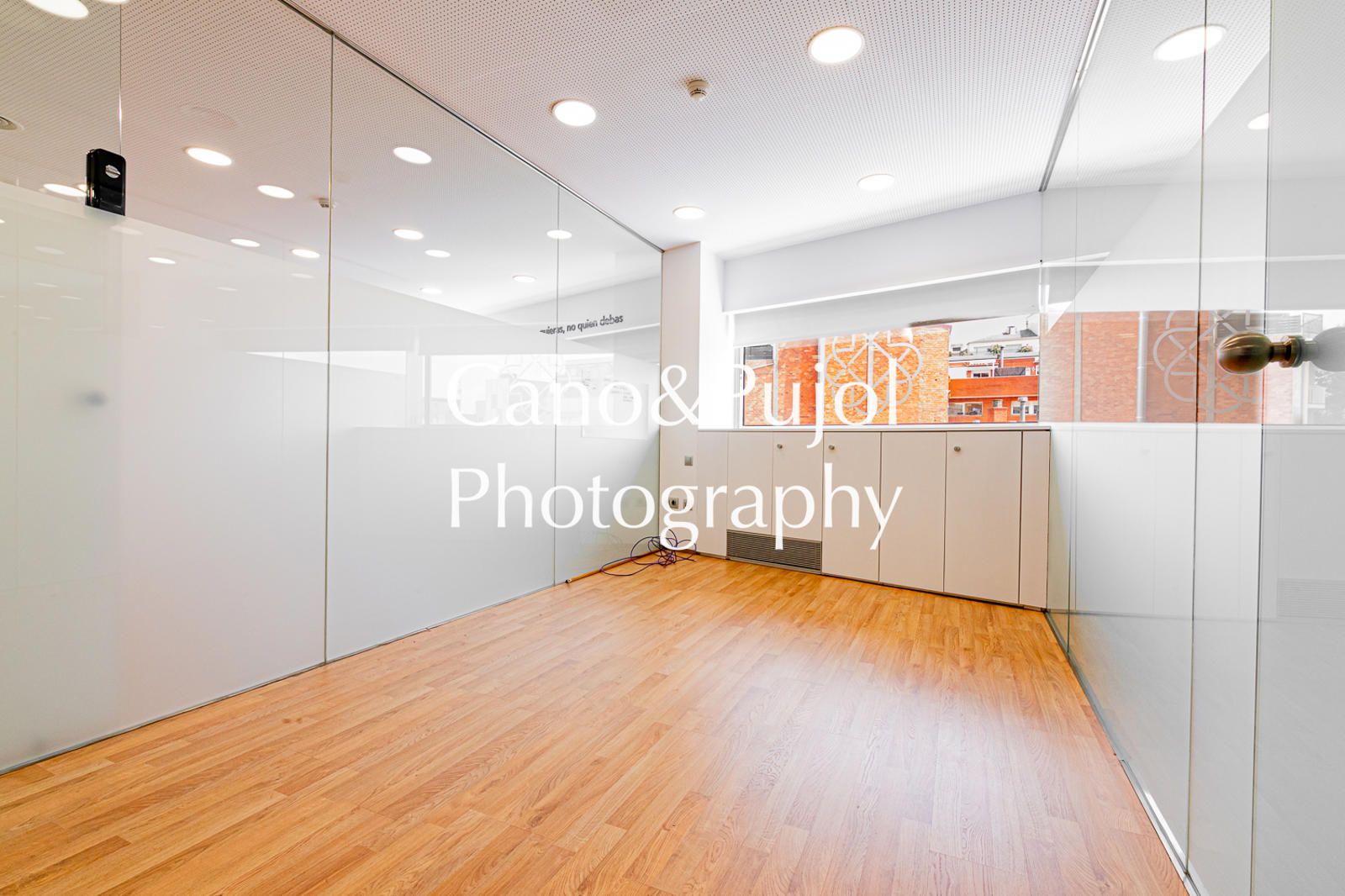 Con 190 m² construidos (186 m² útiles), esta oficina ocupa la planta completa, lo que garantiza privacidad, visibilidad y comodidad. Se accede directamente mediante ascensor privado a una zona de recepción, que conecta con tres despachos independientes, una sala de reuniones, espacio de archivo o almacén, y dos baños de uso particular.