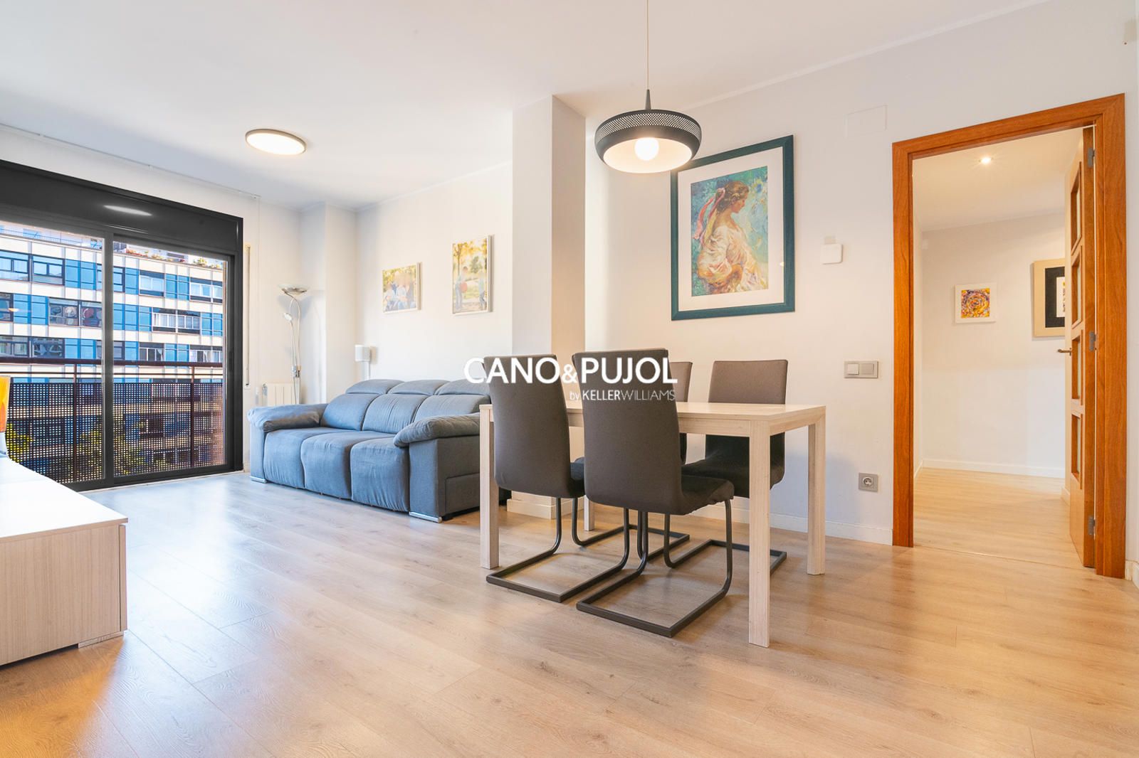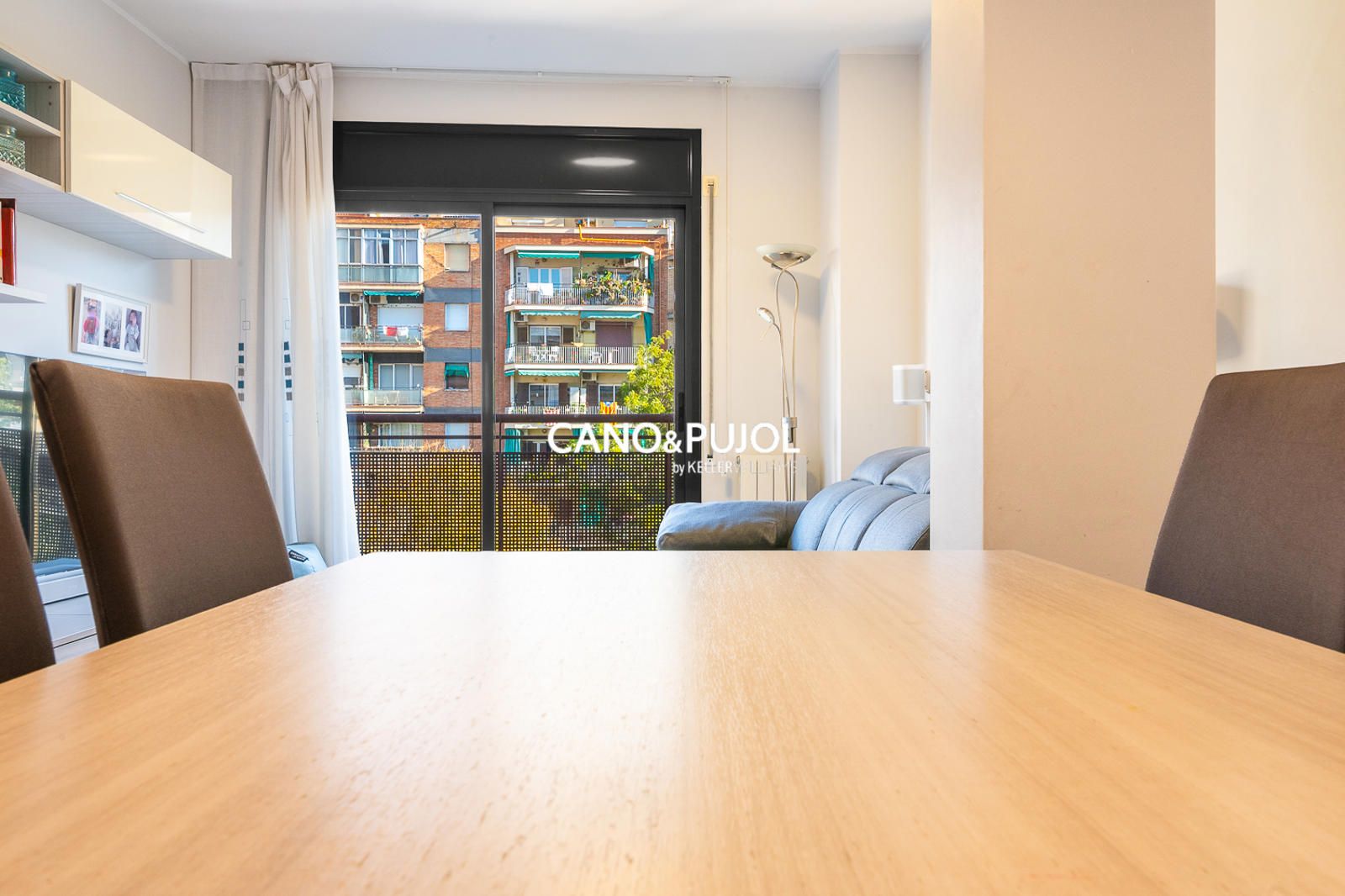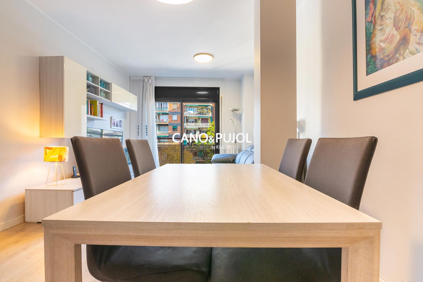 El salón-comedor, amplio y acogedor, tiene salida directa a un balkon perfecto para disfrutar de la luz natural y de las vistas abiertas.