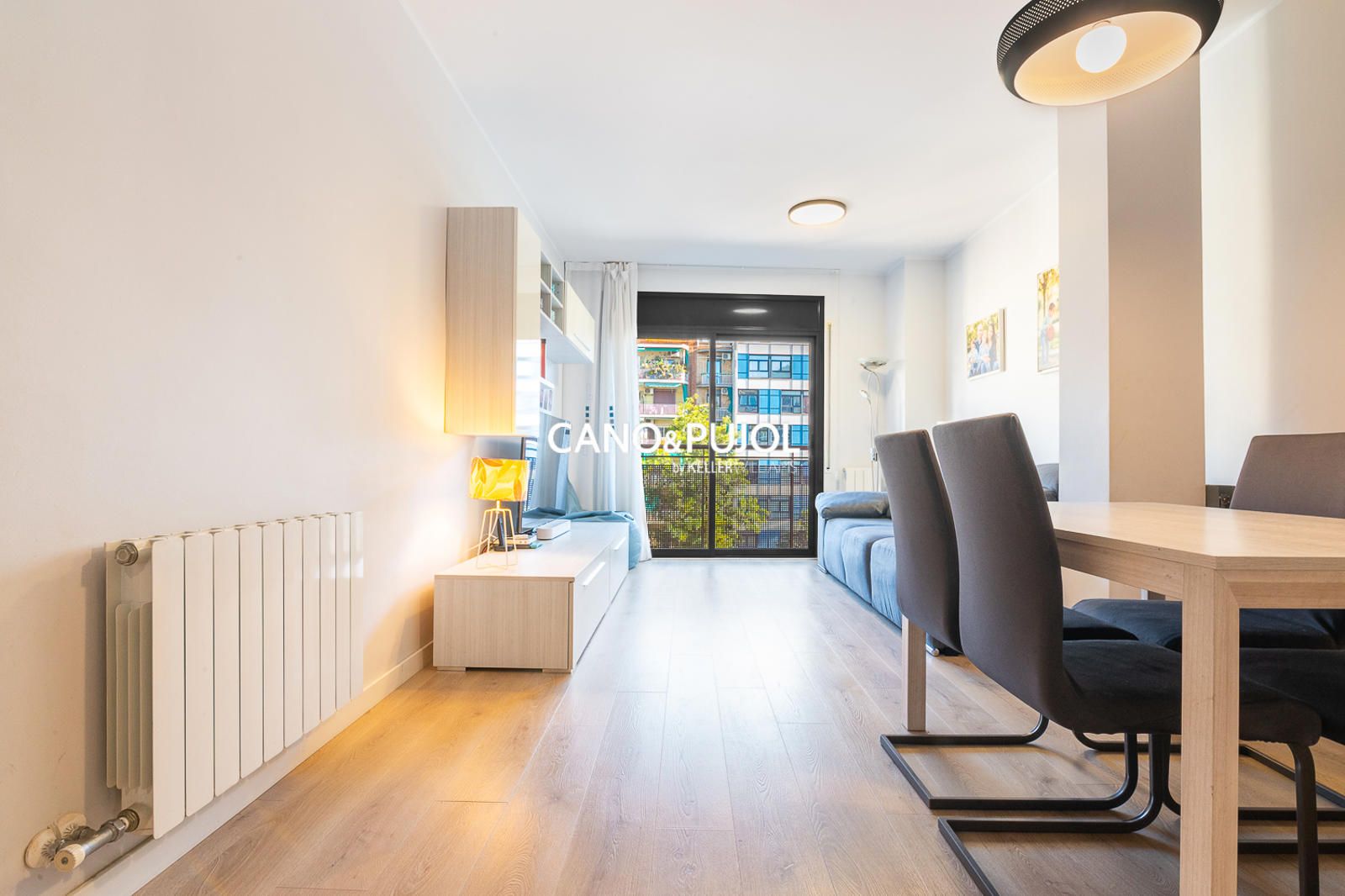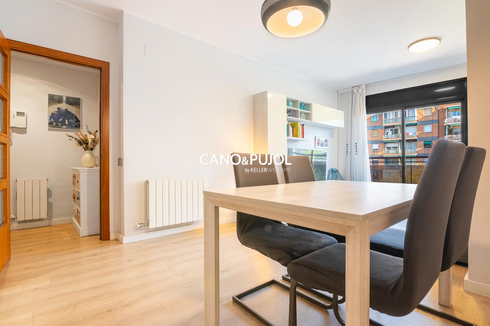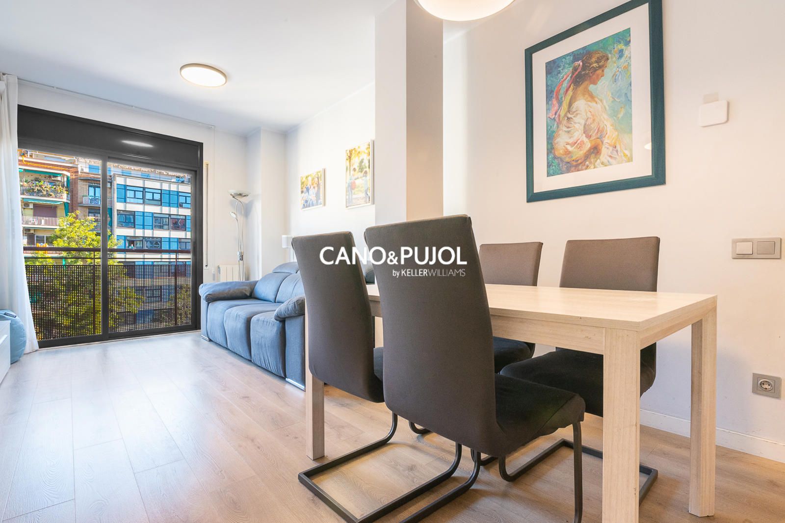 El salón-comedor, amplio y acogedor, tiene salida directa a un balkon perfecto para disfrutar de la luz natural y de las vistas abiertas.