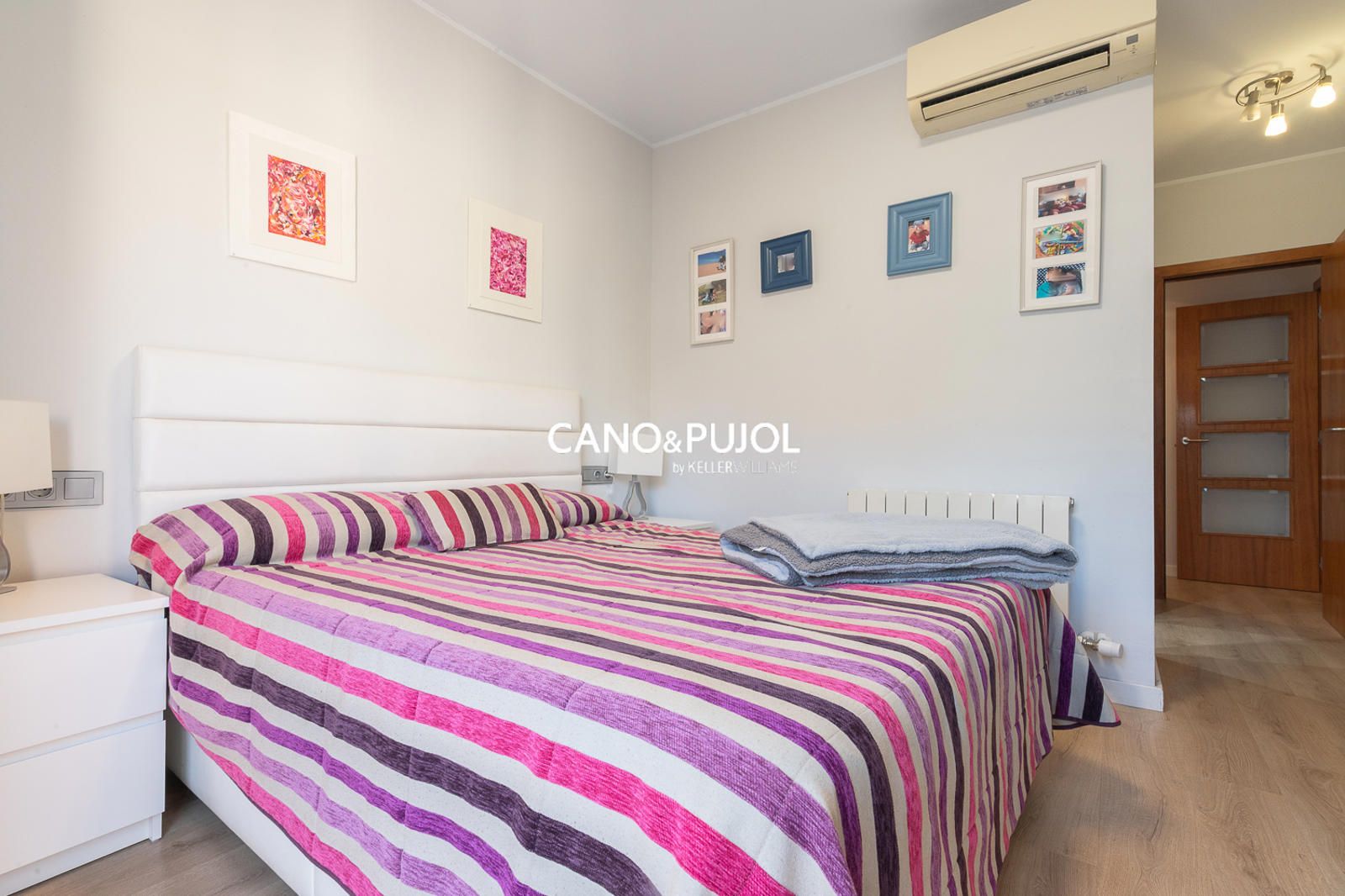 La vivienda se compone de tres habitaciones bien distribuidas y dos baños completos: uno equipado con ducha y el otro con bañera. La cocina, de forma cuadrada y muy cómoda, está totalmente equipada e incluye vitrocerámica y amplio espacio de almacenamiento.