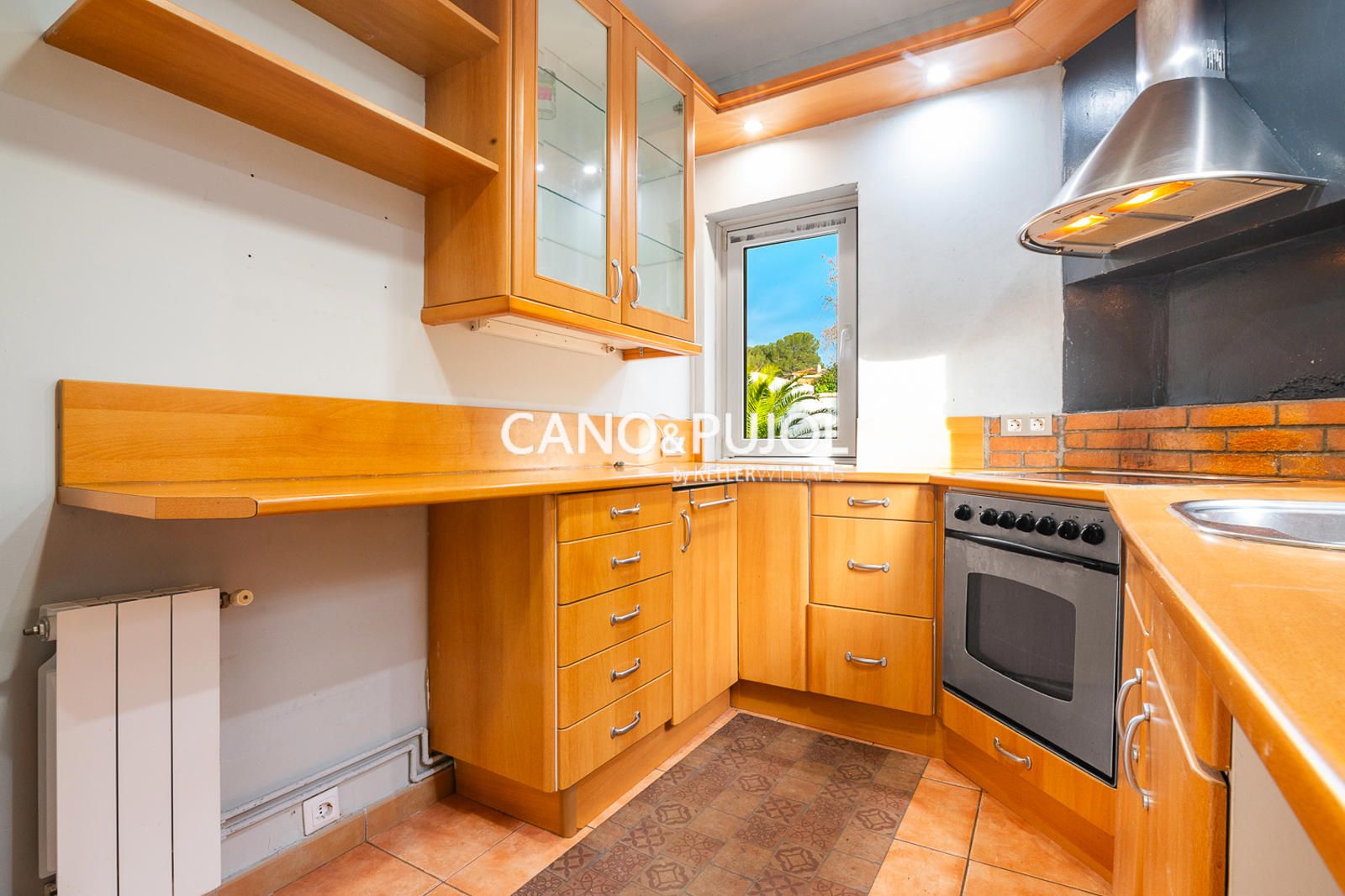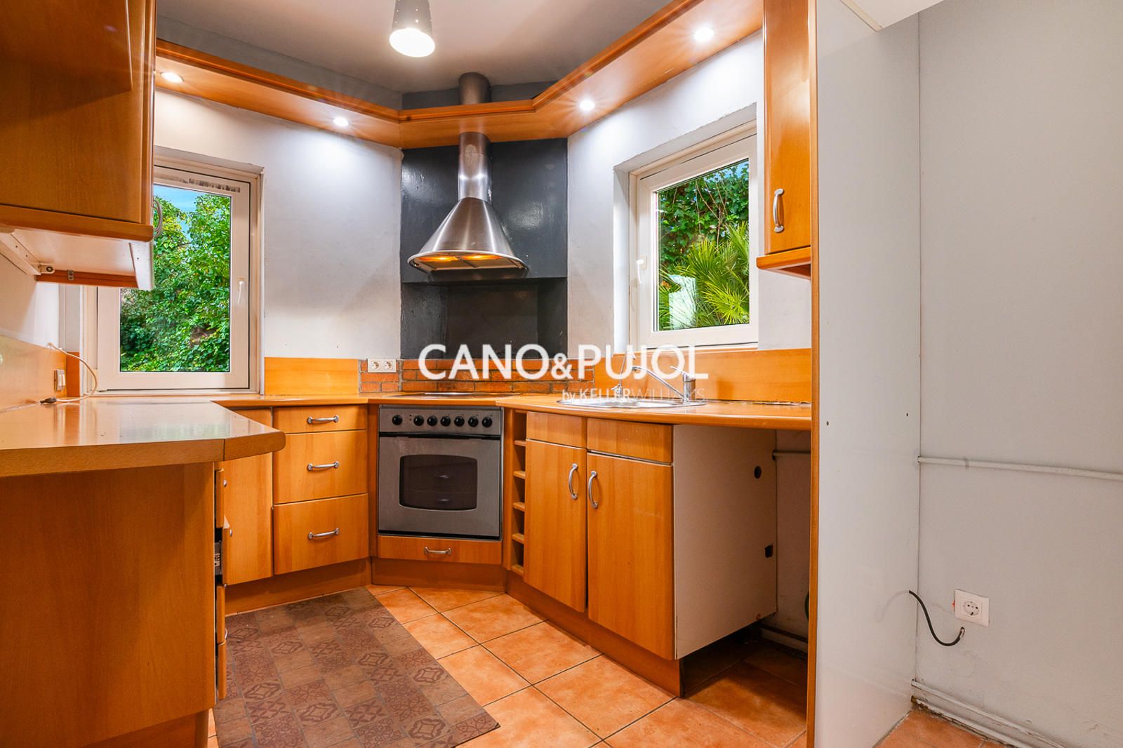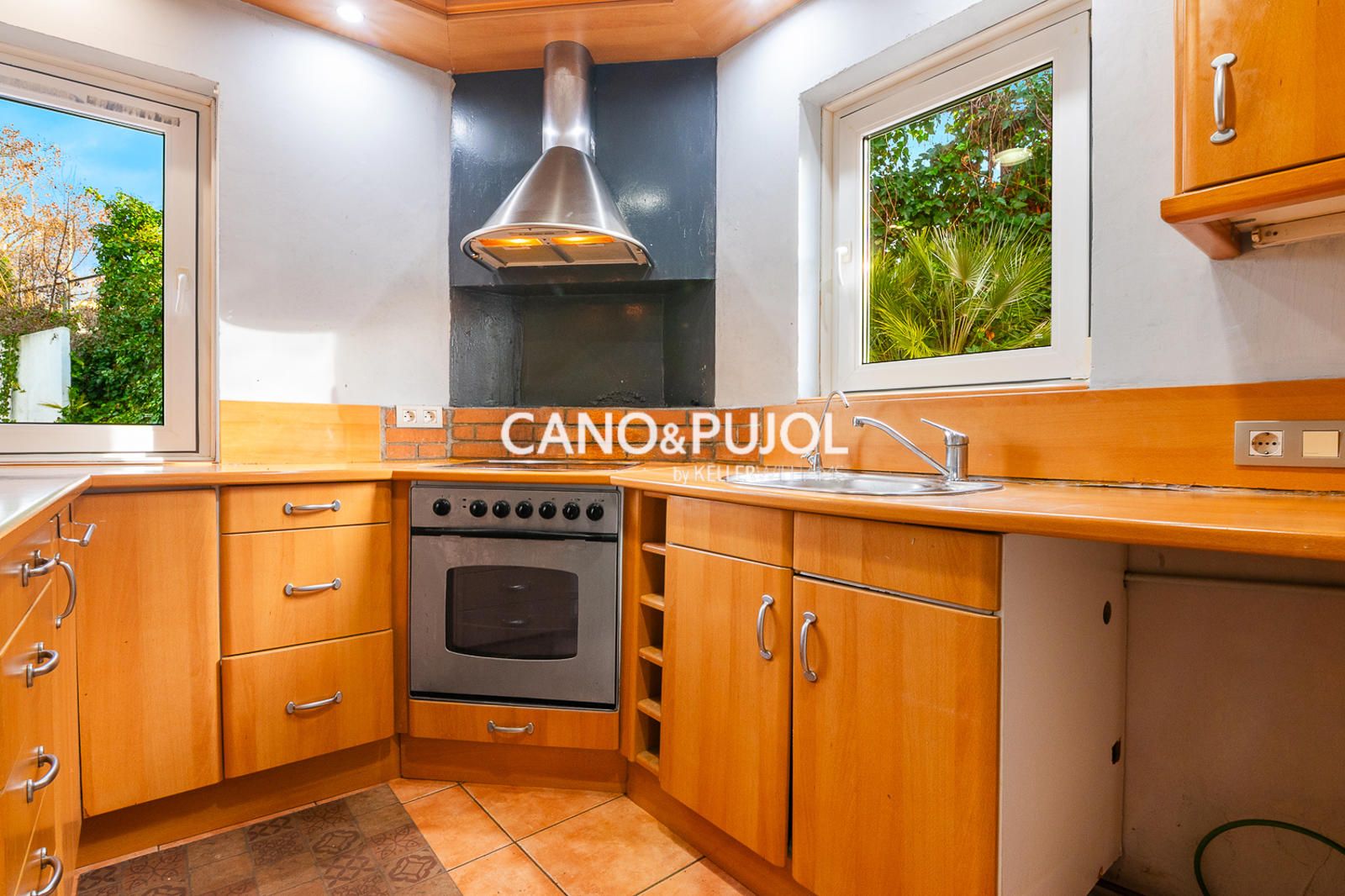 En esta misma planta se dispone de un aseo y una cocina equipada con vitrocerámica y campana extractora, con posibilidad de recuperar el acceso directo al jardín. La vivienda dispone de carpintería interior de aluminio.